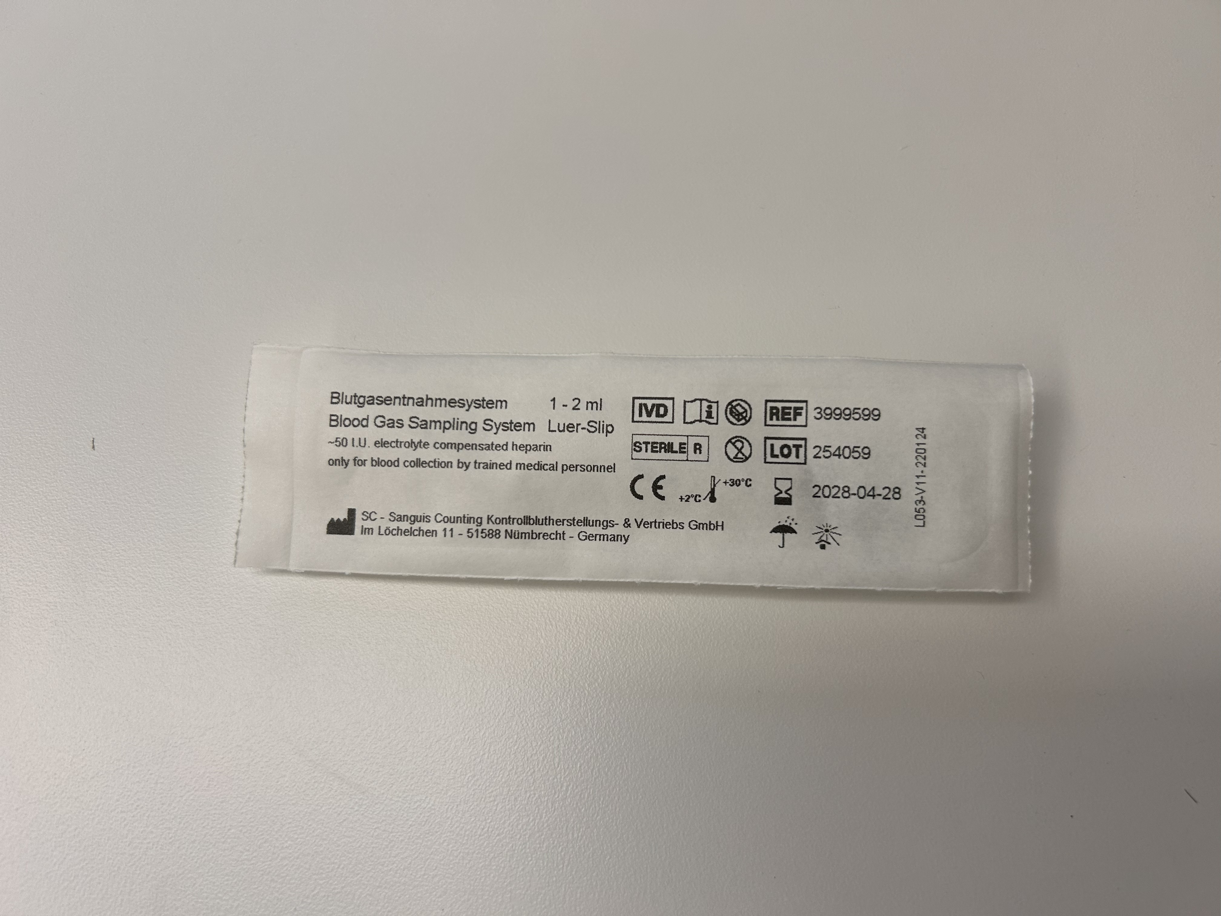 Blutgasentnahmevorrichtung (Spritze), einzeln und steril verpackt